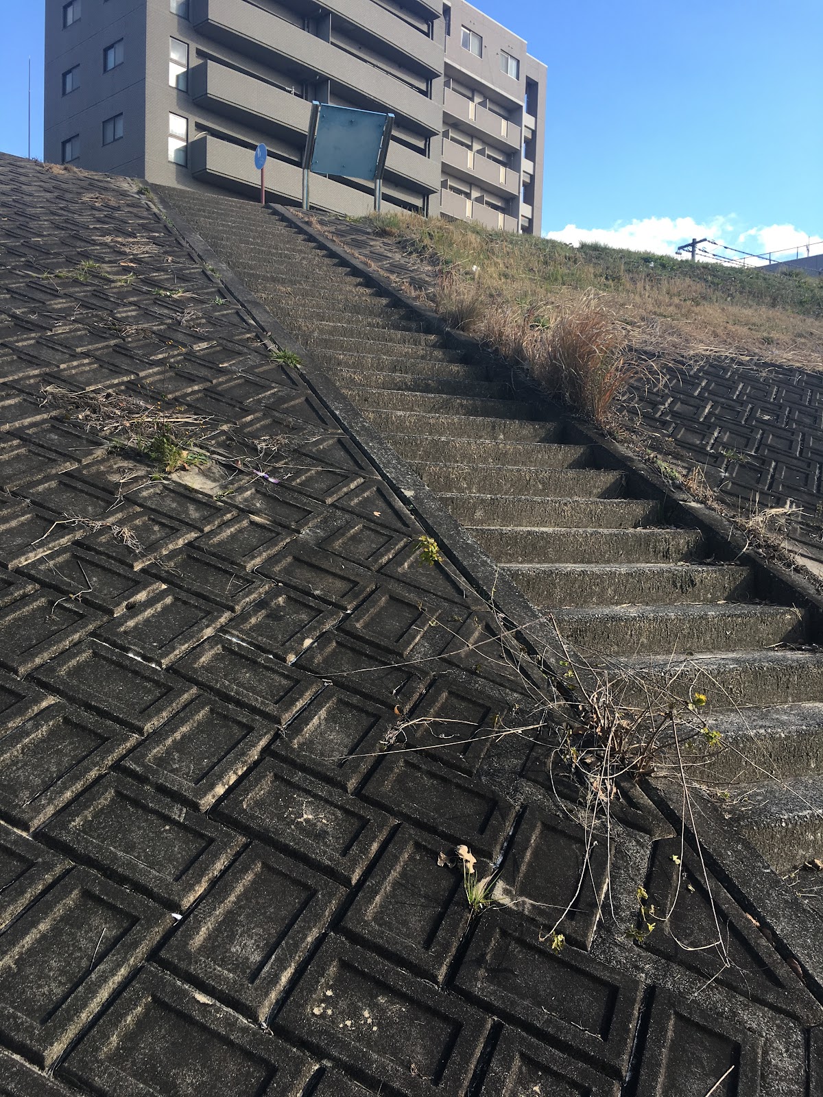 前回紹介した 平成橋(東)の土手 ~魅惑のシンプル公園~から階段を降ります。