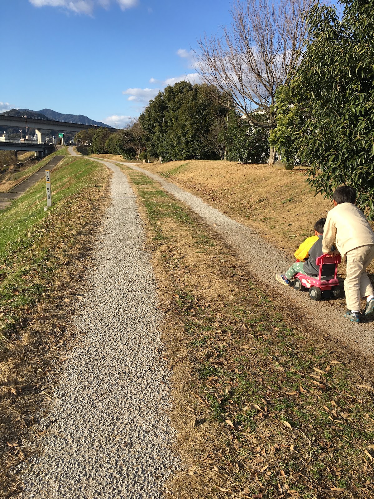 歩き疲れた下の子は進めないようなので、お兄ちゃんに押してもらいましょうか。