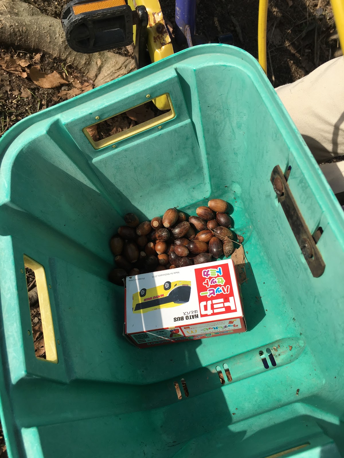 最終的に1時間ぐらいどんぐりを拾ってました・・・。