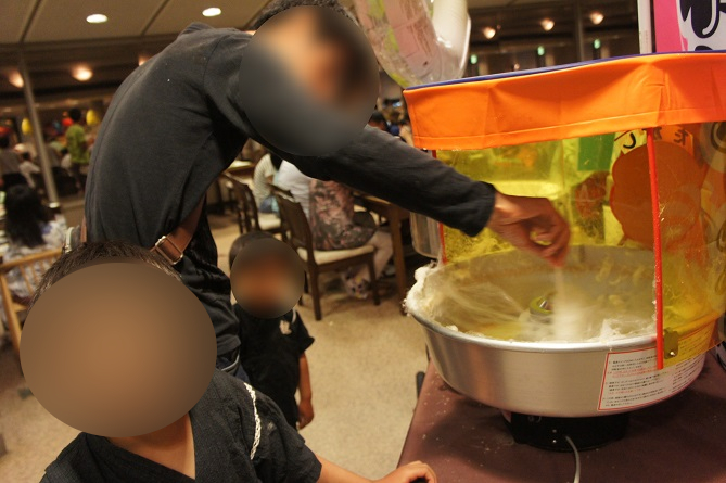 食事の終わりごろにいくと並んでいる&機械が汚くなるので、ある程度食べたら少し早めに行く方が良い、早すぎると綿あめが溶けるので注意!
