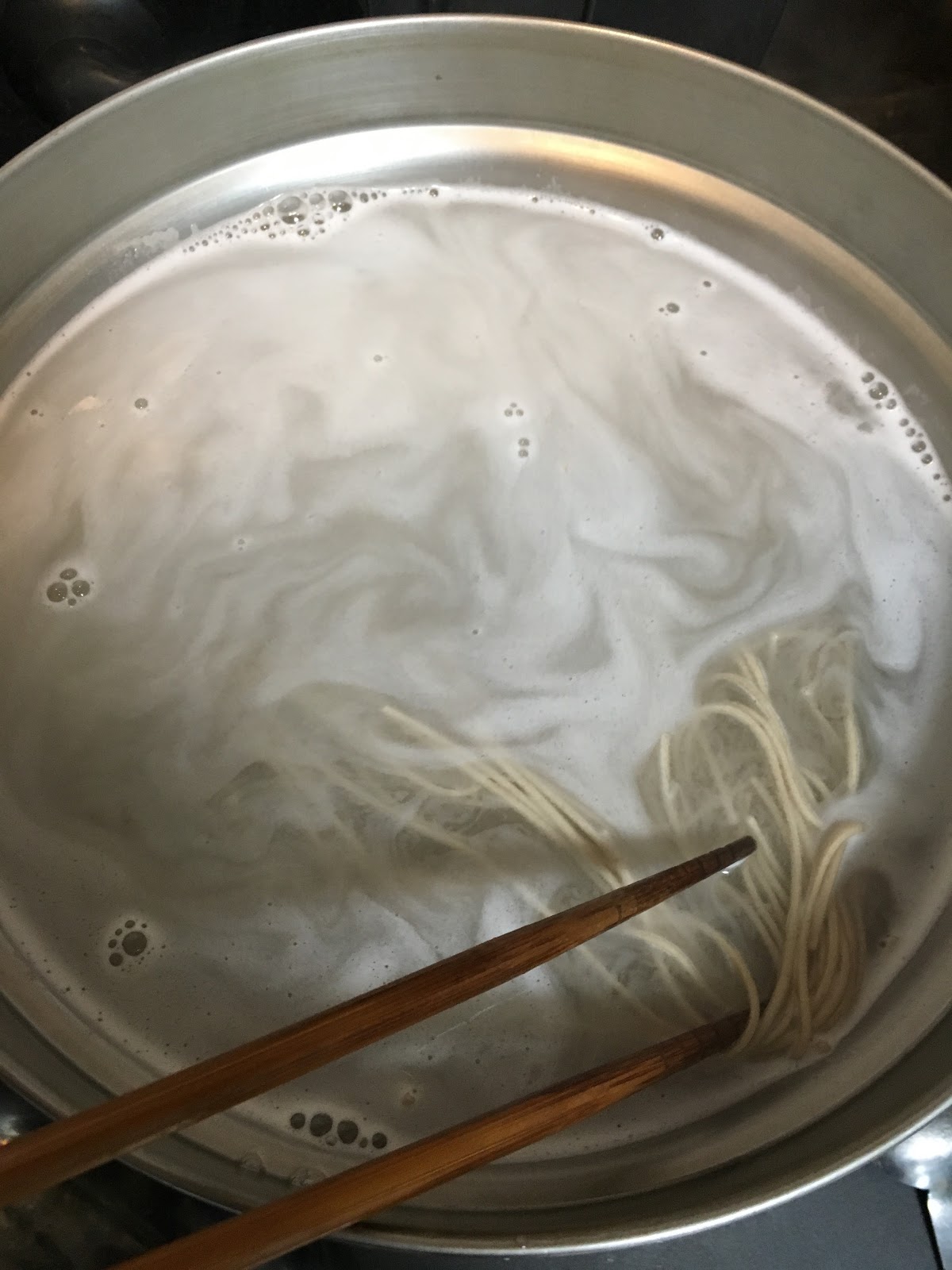 あと、水を少なめにゆでたのでドロドロなので丁寧に流した方がさらっといただけます。