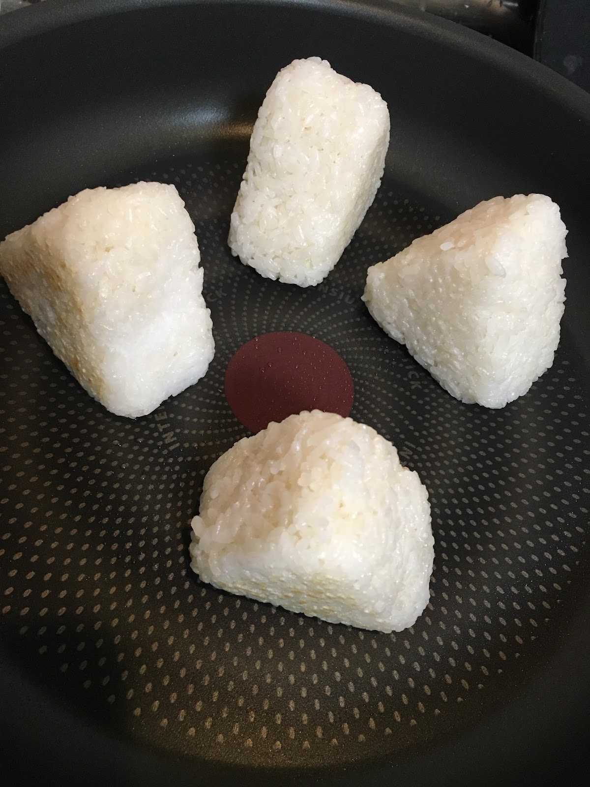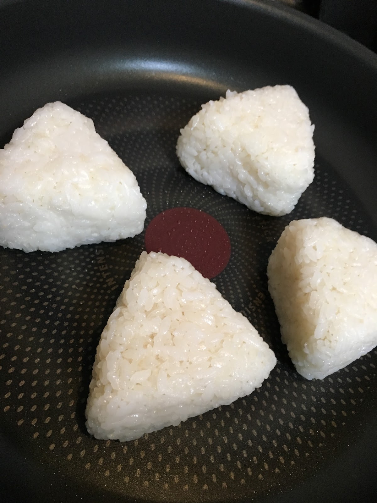 かけ終わったら、おにぎりをひっくり返します。