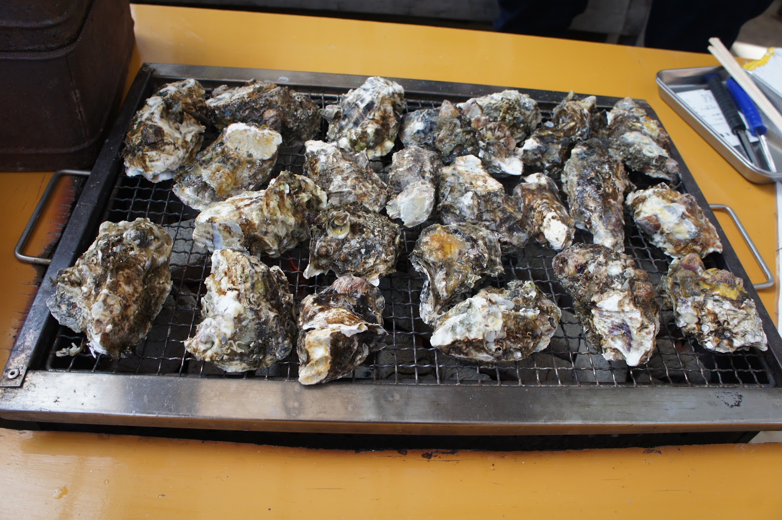 さて、そろそろ中身がスカスカのカキが焼けたかな・・・