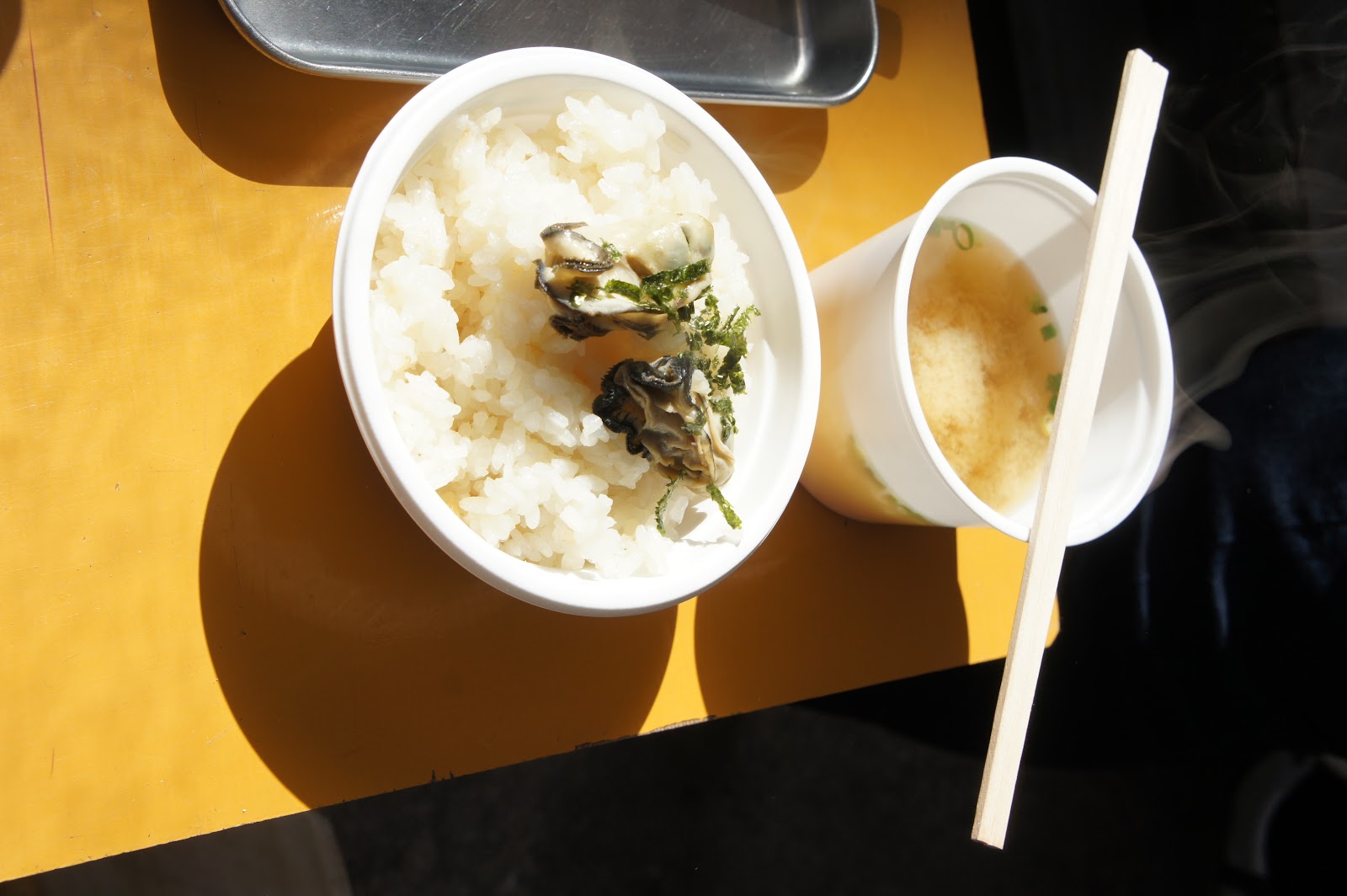 後ろのおじさまは生に近い焼きカキを豪快に食べていてうらやましかった(´・ω・`)