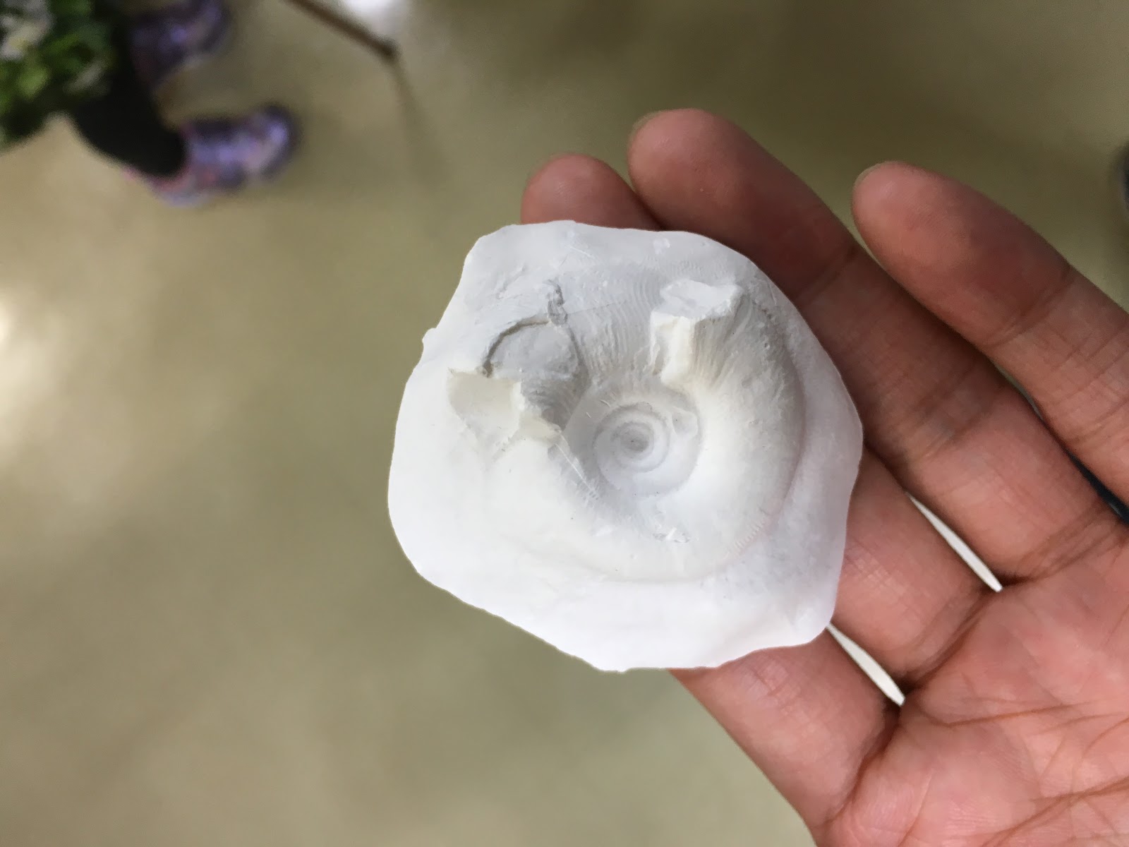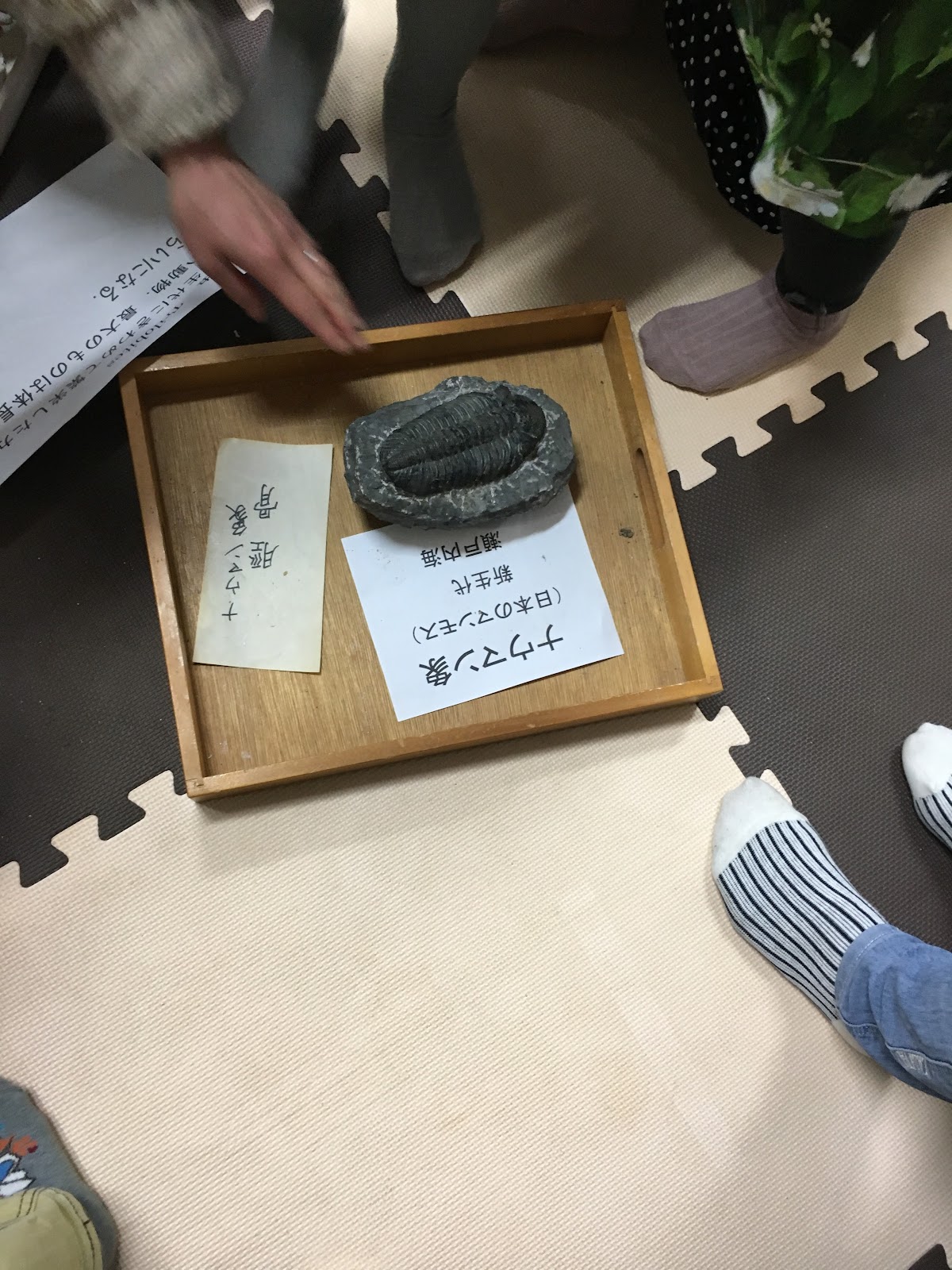 オウム貝の化石!触ったことありますか?聞いて絵で見たことはありますが触ったことはないですよね。結構子供たちに雑に投げられて割れていました(笑)
