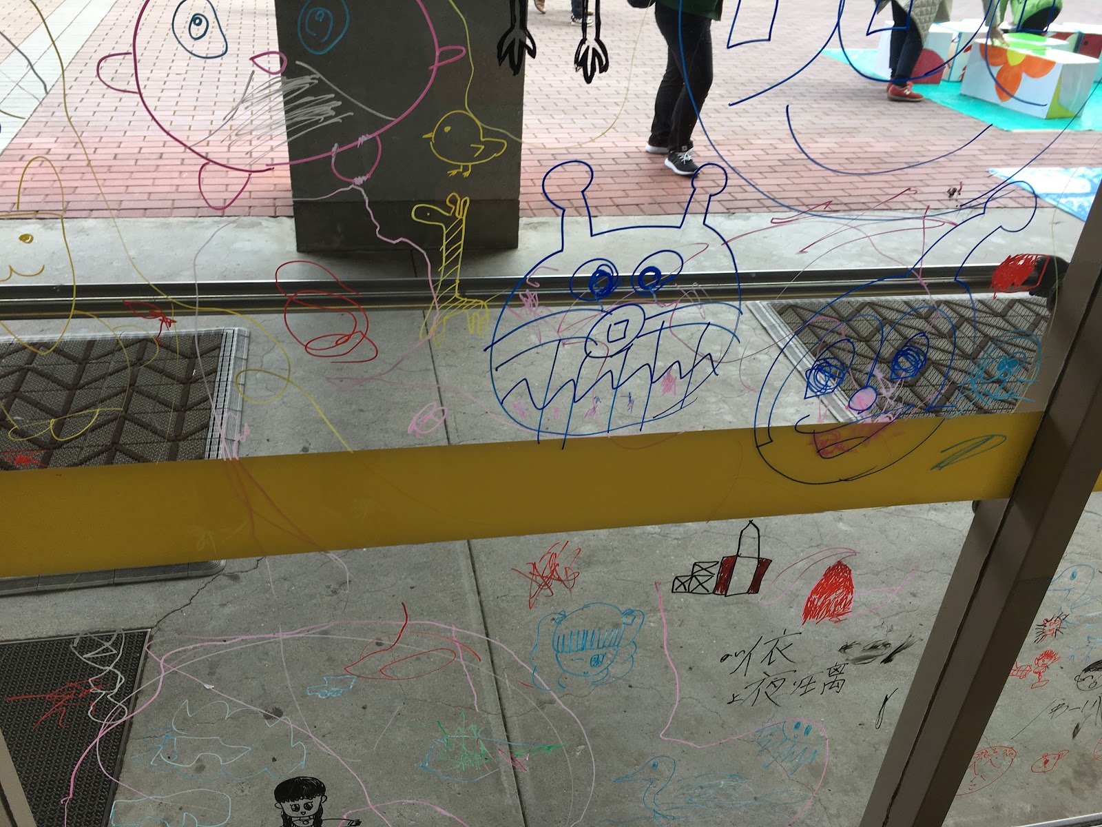建物も取り壊すのか、窓ガラスは自由に絵をかいてもいいという自由さ|д゚)