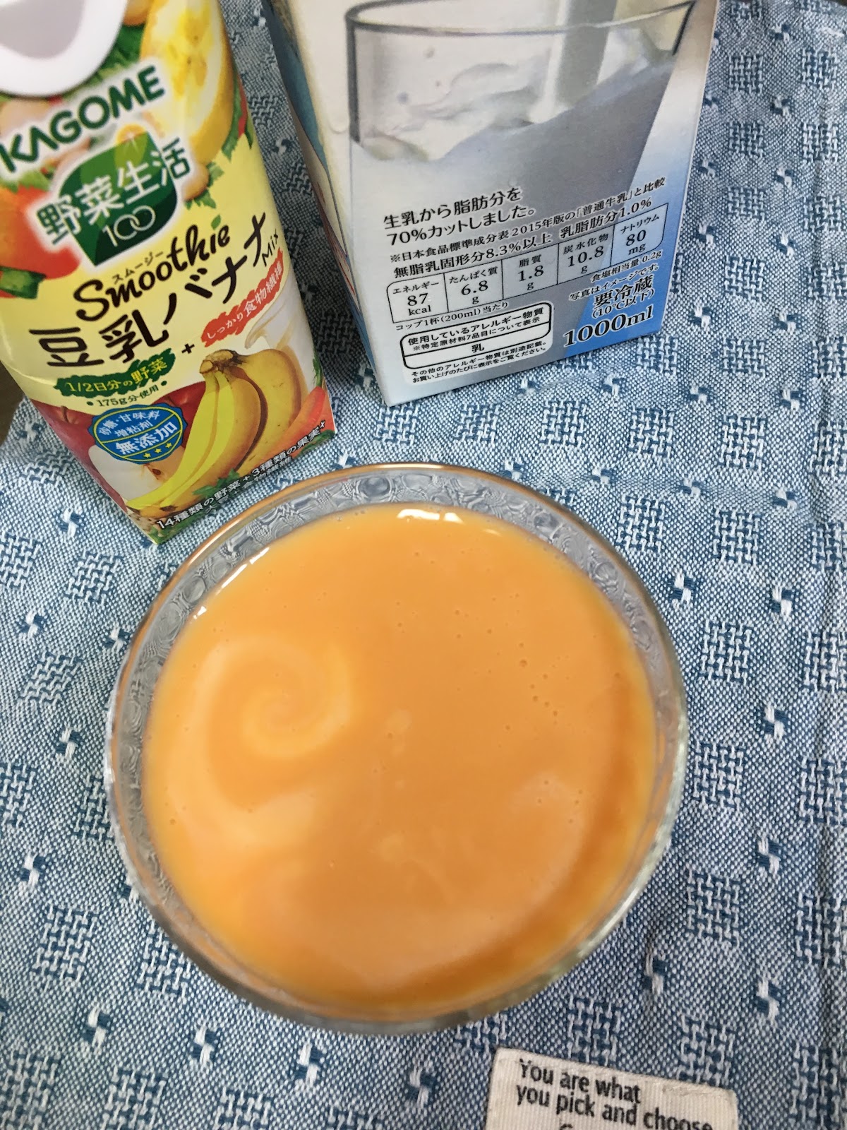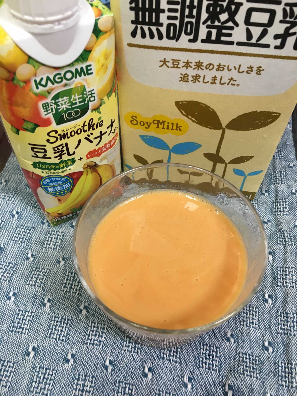 「朝ごくごく飲める、食べる感覚のスムージー 野菜生活100 スムージー 豆乳バナナMix」 じゃあ、前面に出してやろうじゃねーかヽ(^o^)丿 というわけで、野菜生活100 スムージー 豆乳バナナMix と 豆乳を1:1で混合します。