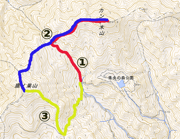③鷹ノ巣山山頂~国有林専用道入口駐車場