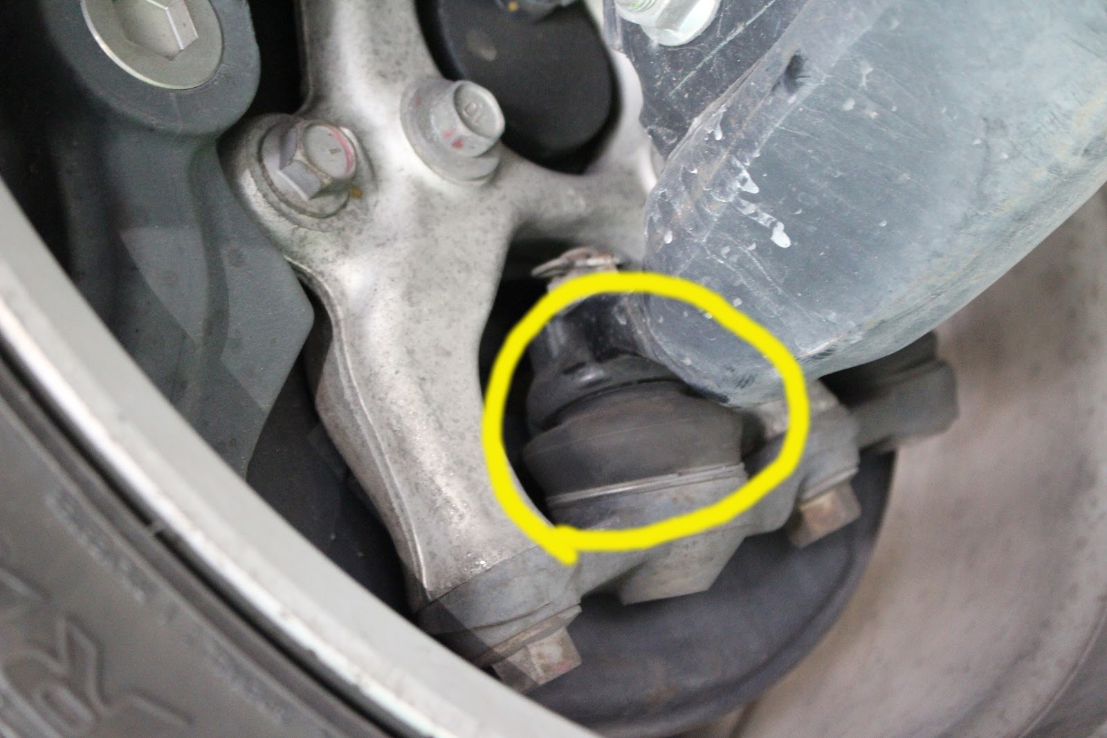 通常では隙間が空いていないはずのロアボールジョイントで隙間ができているとのことです。リフトで上げないと隙間は確認できないらしいです。