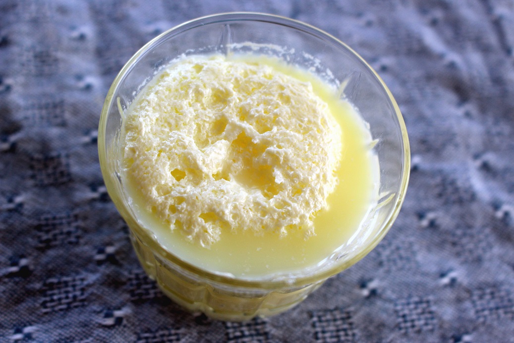 脂肪分は100グラム中、4.1グラムです。 いつも通りの盛大な泡立ちです。