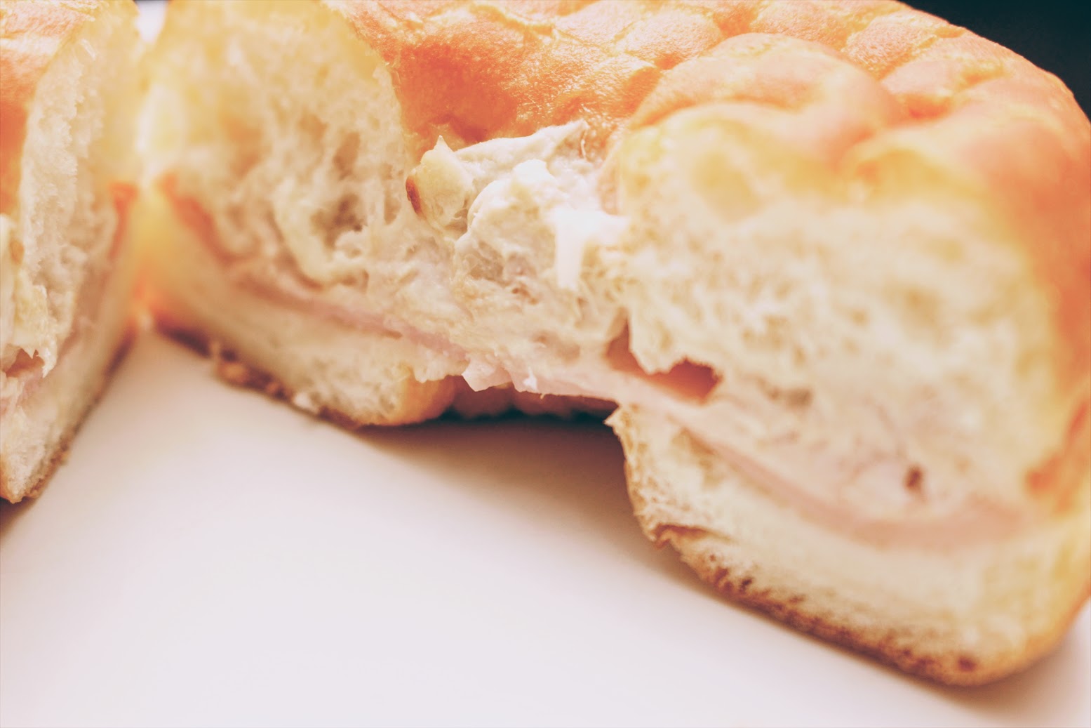 真ん中にはツナマヨネーズに玉ねぎが入っています。冷め冷めでしたが、塩味が効いていておいしかったです。