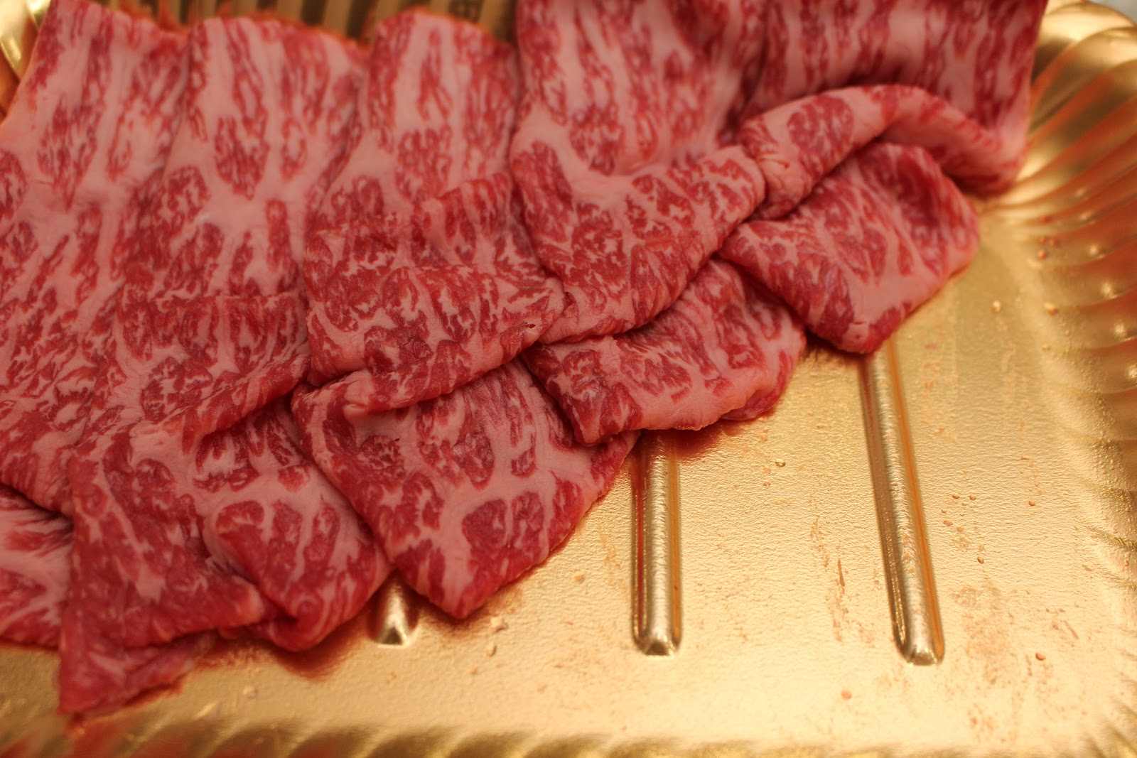 牛肉は高いのでなかなか食卓に上りません。基本的にグラム100円の国産とりもも肉が贅沢品です。 すき焼きをするということで、近くのデパートで牛肉を手に入れました。 普通牛肉は噛み切れないので子供は嫌います。「こんなおいしいのに、なんとも贅沢な、けしからん!」 とは思いつつ、まぁ、気持ちは分かります。 しかし、この度手に入れたのはグラム1000円に迫る高級肉! 色合いが大変美しいですね!容器の色もこのクラスは金です。 同じ肉をもう一枚! パシャ! えー・・・まずそう。カメラって難しい。 こちらもグラム800円の高級牛肉、部位はよく分かりません! 同じ肉をもう一枚! パシャ! えー・・・、詐欺ですね。 その後すき焼きに調理しましたが、やはりこのクラスの肉は噛み切れますね、そして食べた後の満足感がだいぶ違います。 2回のすき焼きより、1回にすき焼きで高級肉の方が心に豊かな経験が刻まれるような気がします。