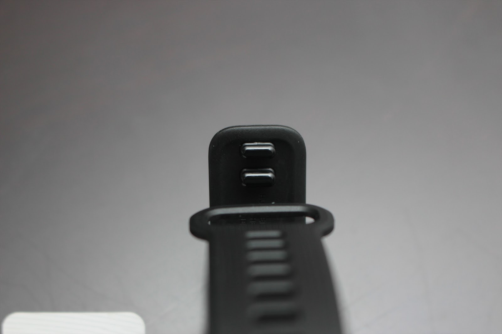 止めやすそうなバンドですが、ツルツルしているので少しつけにくいかな。片手でつけようとするとなかなか苦戦しました。