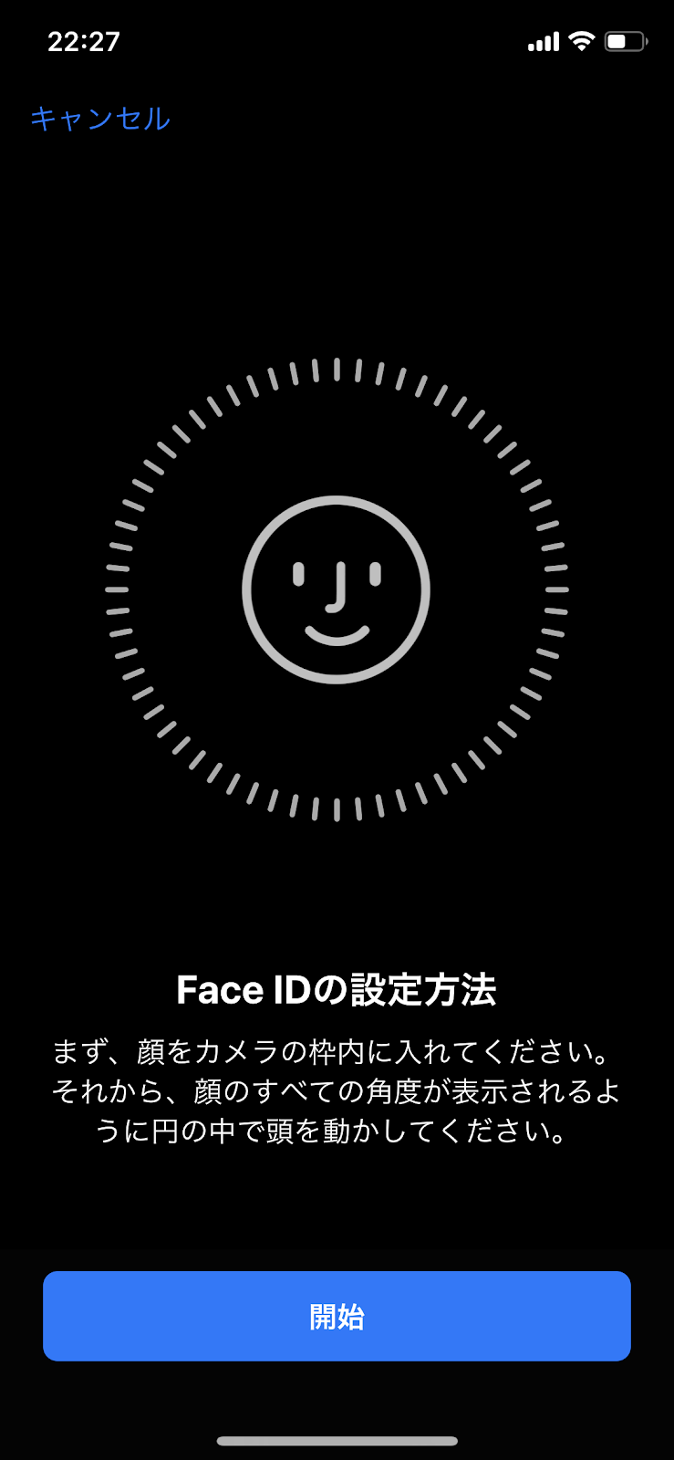 「そもそも顔が近すぎて顔全体が見えていないのじゃないか?」と考えました。FaceIDに顔を登録するときも、「顔を小さい枠の中に顔を入れて首を回せ」と言われたのを思い出しました。