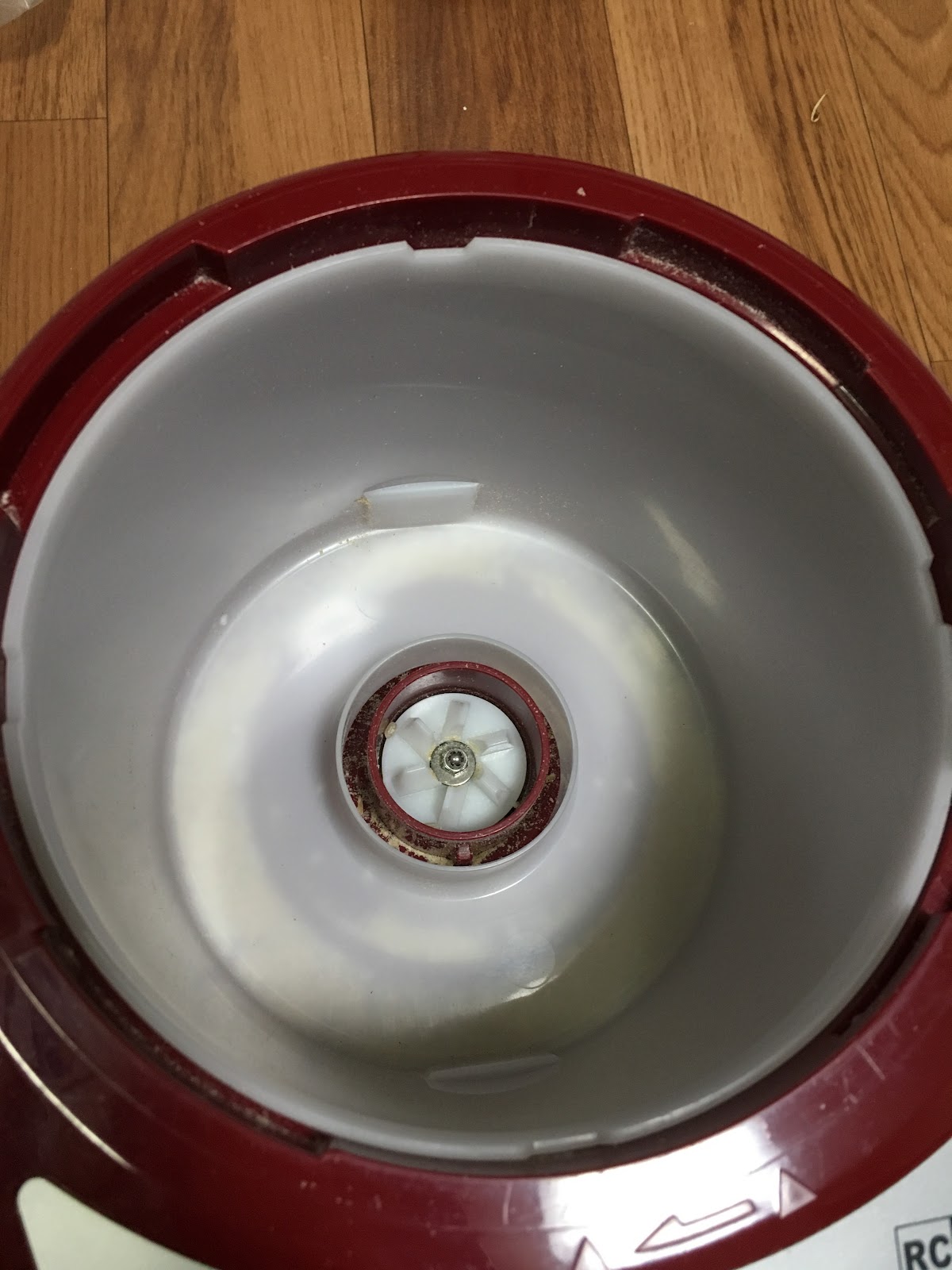 中はこんな感じで、白いケースのなかに米ぬかがたまり捨てるのが大変楽です。
