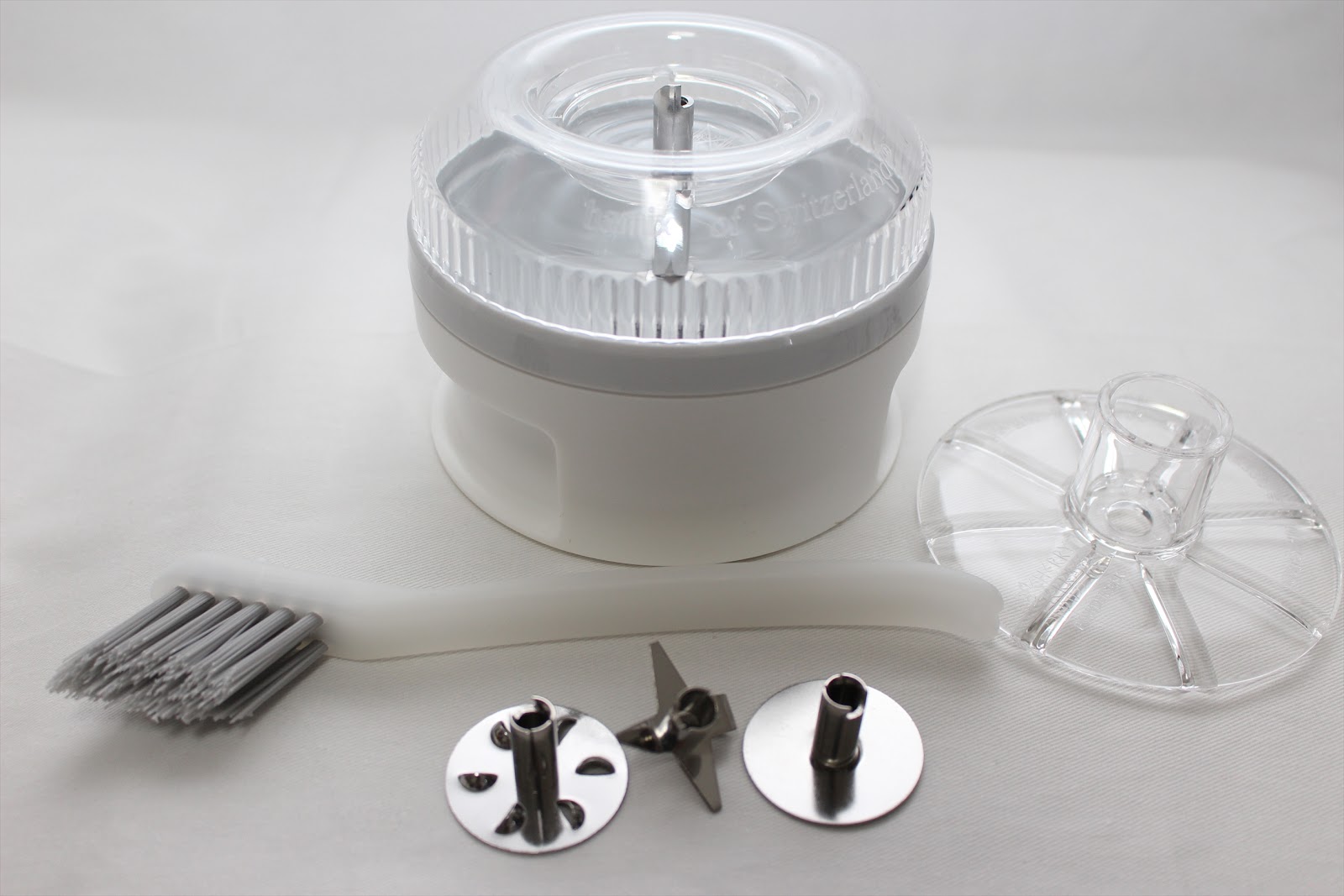バーミックス本体と立てかけるスタンド以外にスーパーグラインダーとパウダーディスクが付属されます。スーパーグラインダーは主にみじん切りが超高速でできます。